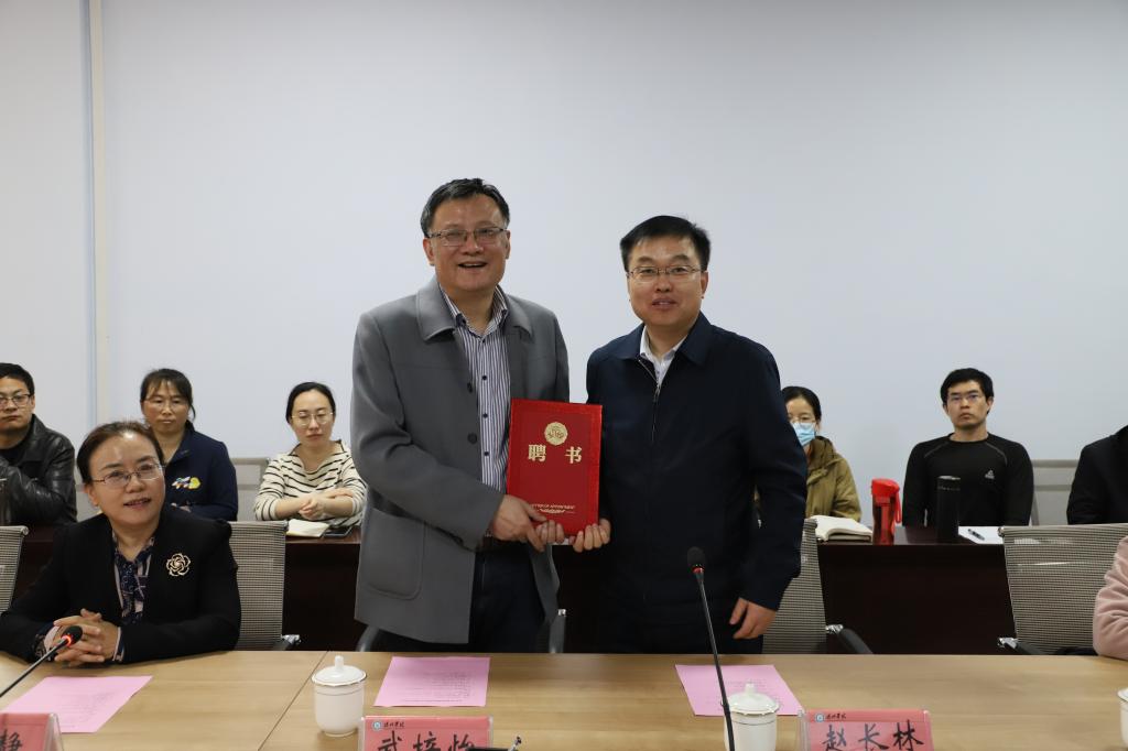 4月20日上午,东华大学博士生导师、国家杰出青年基金获得者武培怡教授受聘公司兼职教授仪式在启智楼五楼举行。公司党委副书记、董事长赵长林出席仪式并为武培怡教授颁发聘书,人事处、科研处、 医药与护理学院班子成员、青年教师、研究生及本科生代表参加会议。聘任仪式由公司党委委员、副董事长徐静主持。