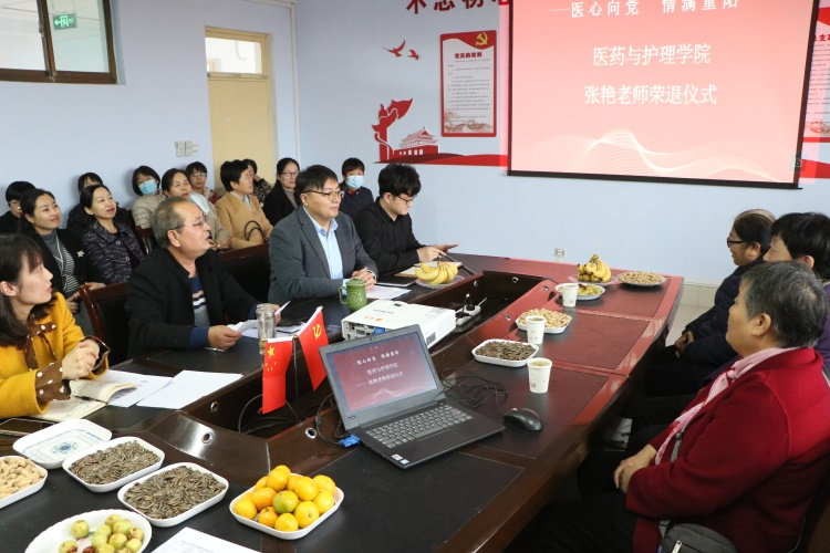 10月19日下午,医药与护理学院在体育楼509会议室举行张艳老师荣退仪式。仪式由医药与护理公司党委书记冯立顺主持,班子成员、全体教师、离退休教师代表出席仪式。