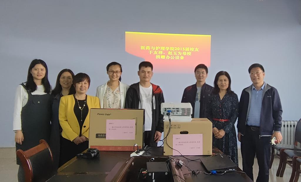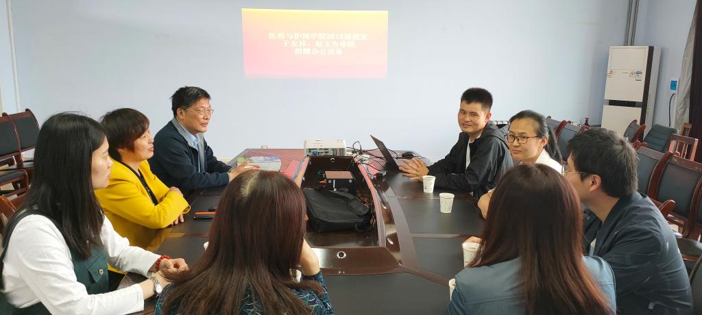 5月11日校庆之际,医药与护理学院94级员工范庆生夫妇、15届员工于友祥夫妇、16届员工李志文重返母校,医药与护理学院领导班子、员工班主任、团总支老师在体育楼508会议室接待了员工,并举行了员工捐赠仪式。